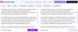 Ele também destaca palavras e frases modificadas em cores “ roxo ”Para facilitar a comparação. Além disso, Text Rewrite permite que usuários gratuitos reescrevam até 1.000 palavras de uma só vez. Para aumentar esse limite, os blogueiros espanhóis devem adquirir o plano premium.